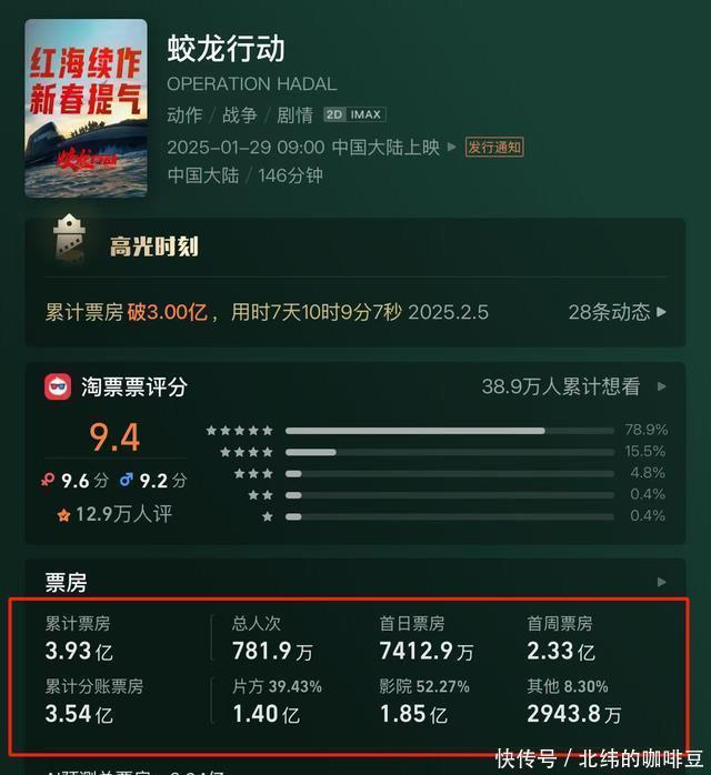 由于是第一部拍摄这种题材的作品,观众还能被割割韭菜,可当《红海行动》第二部《蛟龙行动》上映后,观众彻底不买账了。 最终,《蛟龙行动》上亿的投资,只换回了3.9亿元的票房,除去影院分成、制作成本、宣发资金等等,完全就是赔了。