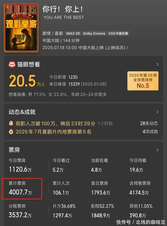 可《你行你上》却完全不同,因为该作品说白了就是郎朗的自传,至于这部作品的背后到底体现了怎样的故事剧情,我倒没有感受到。 不过也有网红大V对这部电影做出了解读,这位网红认为《你行你上》表面上看是在讲述郎朗的自传,其实则是在暗示着“中国近年来发展速度的飞快。”