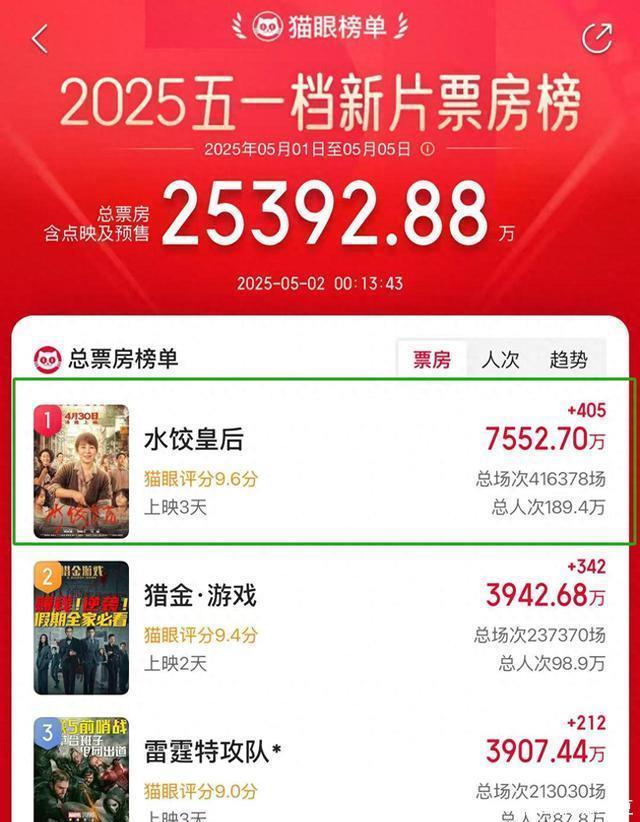 要知道近年来马丽一出场,可就是票房的保证。 记得在前俩月的五一档电影中,马丽主演的《水饺皇后》,还拿到了4亿多的票房,稳稳占据了五一档的票房冠军。