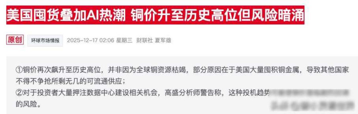 美国COMEX铜库存半年涨了三倍多,突破四十万吨,背后是政府和资本在大量买入,而中国每年用掉近一千四百万吨铜,自给率还不到两成,最缺铜的本该是中国,市场却没见抢购,平静得有点反常。
