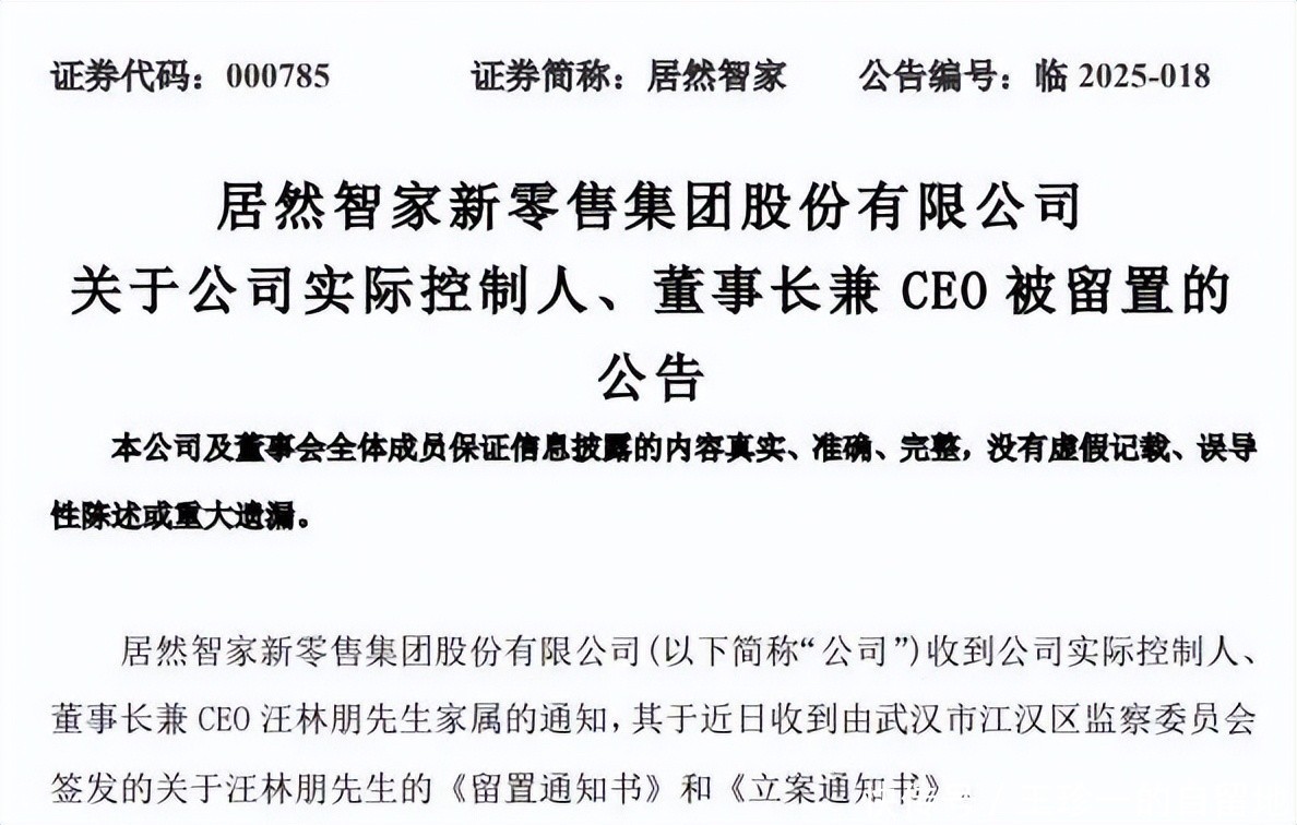 值得一提的是3天前,居然之家发布公告称汪林朋的留置措施已被解除,已经变更为“责令候查”,汪林朋已回到工作岗位正常履职。