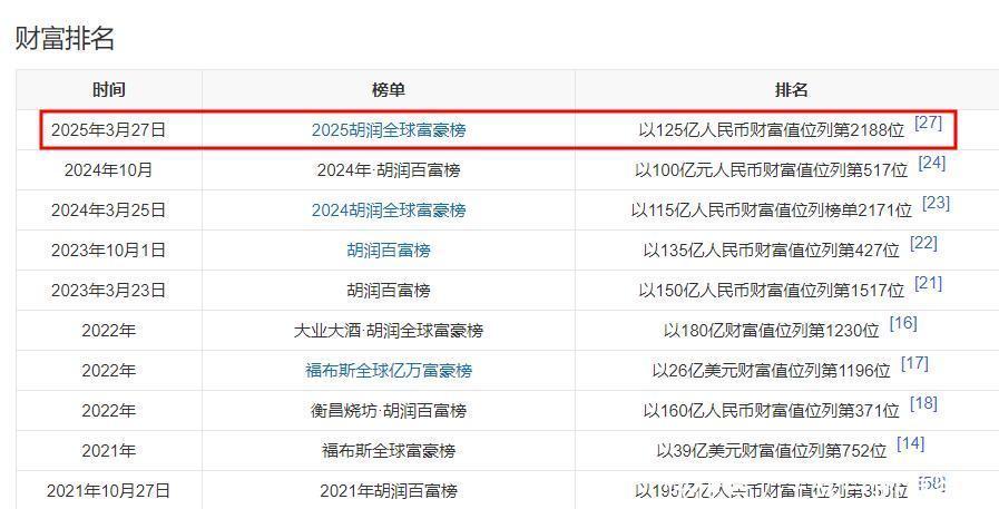 也是在3月,他以125亿元的财富位列《2025胡润全球富豪榜》第2188位。